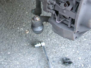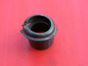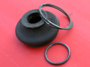 | タイロッドエンドブーツが裂けておりました。これはそのまま放置していると、ジョイント部に砂利などが入ってジョイント交換になってしまうので、早急に交換しなくてはなりません。ただ、ブーツを交換するのもタイロッドエンドセパレーターというスペシャルツール?が必要です。ボールナット系のステアリング形式の人はたくさん交換する部分があるので、持っていたほうがいいかもしれませんね。ラックアンドピニオン系の人は2箇所だから、判断が難しいところです。 タイロッドエンドのナットを緩めボルトと面位置くらいにします。国産の多くはクラウンナット(割ピンをかませるので王冠状になっている)になっていると思いますが、この場合は一度ナットを外して上下を逆にしてねじ込み、面位置にしたほうがいいでしょう。セパレーターを噛ませるのでボルト部を保護する意味合いです。 それからタイロッドエンドセパレーターを噛ませ、締め上げます。締め上げてそのまま取ろうと思わないで下さいね。どれくらい締め上げると良いか・・・、普通トルクで書くべきでしょうが、野戦病院にはマニュアルもなければトルクレンチもありません。ボルトが壊れない程度としておきましょう。ボルトの山を壊すと、下はボールジョイントになっているのでナットを回してもボルト自体がくるくる回って外すのに手間がかかりますので、くれぐれも注意してください。 タイロッドエンドセパレーターで締め上げたらナックルアームをハンマーで叩きます。ショックを与えて外すという感じです。560の場合はすんなり外れてくれました。手間取る車は手間取るんですよねぇ。 外れたら、ナットを外します。ボルトの山を傷めてなければ、簡単に外れることでしょう。外れなかったら・・・う〜ん、そうなるとブーツの上からでもボルト部をプライヤーか何かで思いっきり挟んでナットを取るしかないでしょうね。そして、あとでねじ山の修正をした方が良いでしょう。560の場合はボルト部の頭部に六角レンチが入るようになっています。これは良くできていると思いました。 あとはブーツを止めているリングをプライヤーやドライバーなどでこじって外します。このリングの有無や形状は車種によって異なります。560の場合は下の写真右側のようにブーツ下側は二重巻きのリング、上側がCリングになってました。 ブーツ交換の時はグリスを補給してあげるべきでしょうが、今回は破れたブーツのほうもきれいな状態だったので、そのまま新しいブーツに交換しました。と、云よりシャーシグリスが無かったのよ(^^ゞ ブーツを止めているリングの装着は馴れが必要でしょうね。カモちゃんはマイナスドライバーで付けました。 あとはタイロッドエンドのボルトをナックルアームの穴に差し込んでボルトで締めれば終わり。割ピンを使ってる車種は、割ピンでロックすると終わりです。 |