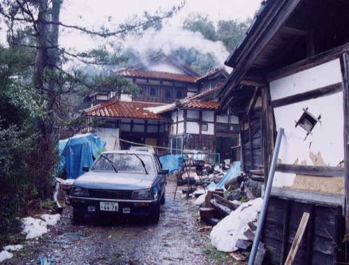 ブルーの車はヤツのではありません。ヤツの車はコケのはえた軽トラックです。