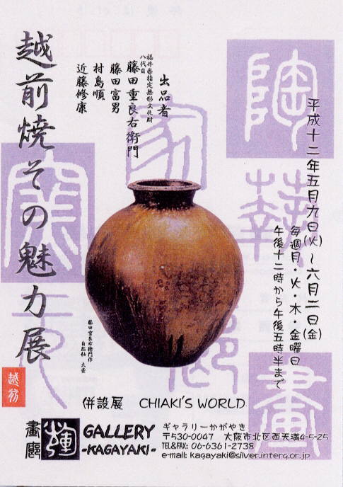 ハガキの裏です。末席に陶芸家の名前が・・・。あ、皆さん陶芸家でした。