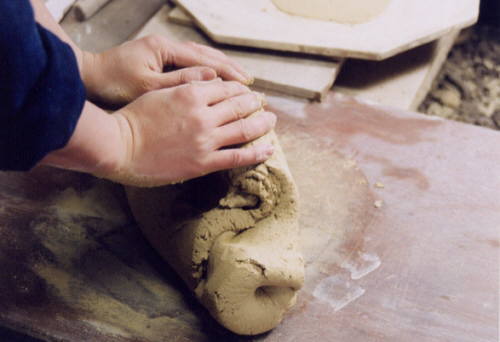 こねています。小石などが入っていたら取り除きながらコネコネしています。そういえばこの調子で陶芸家がハンバーグをこねてました。すごく固かったのは言うまでもありません。